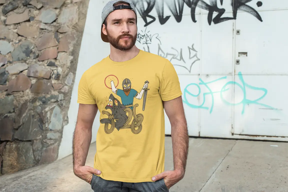 This unisex T-shirt from LostRavn Fashion captures the powerful tale of Tyr and Fenrir, one of the most iconic stories from Norse mythology. Tyr, the god of war, law, and honor, sacrificed his hand to bind Fenrir—the mighty wolf destined to unleash chaos during Ragnarok. His act of selflessness and bravery embodies the warrior’s code: to protect justice at any cost.
