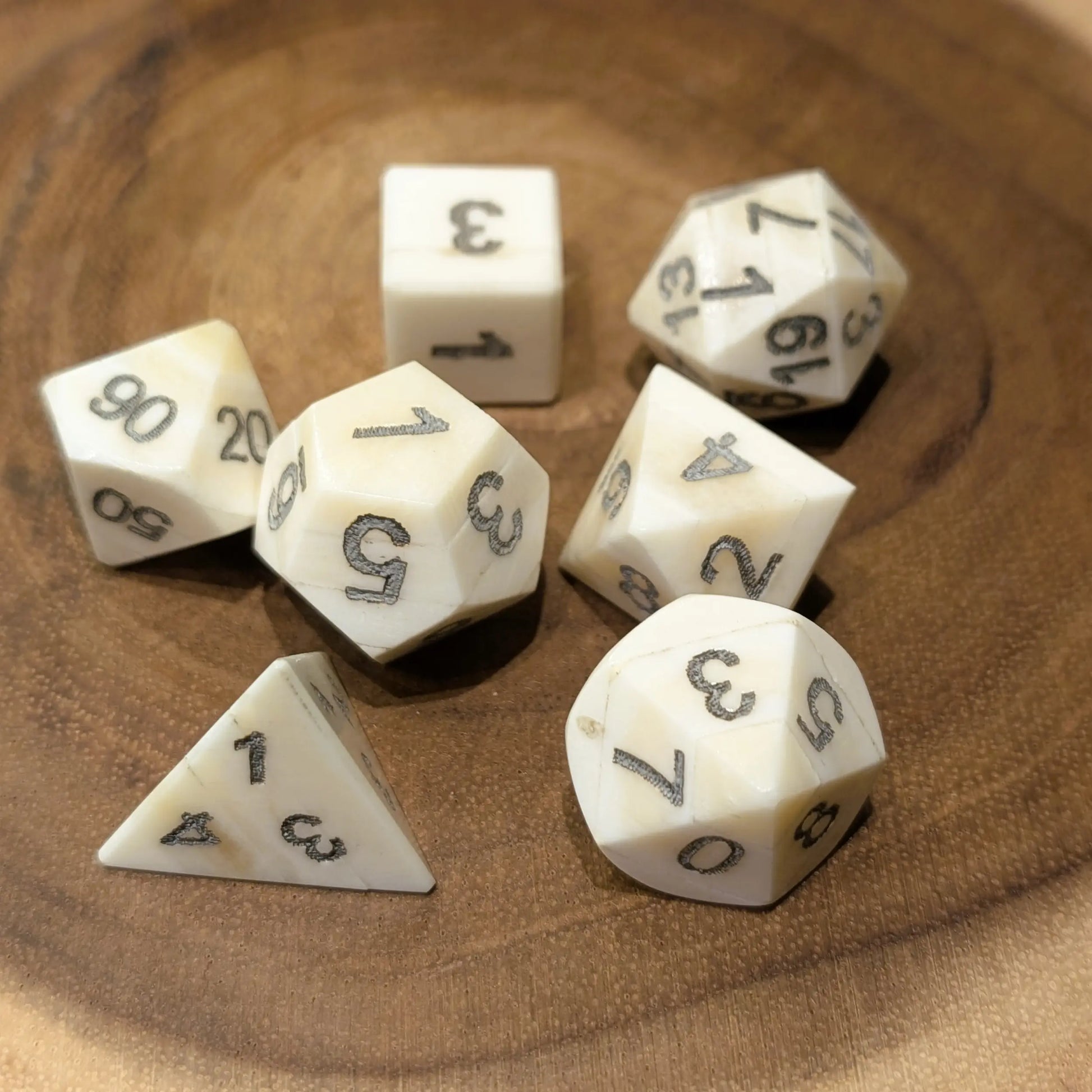 Hand-Carved Cuttle Bone Dice Set for DnD & Tabletop RPGs