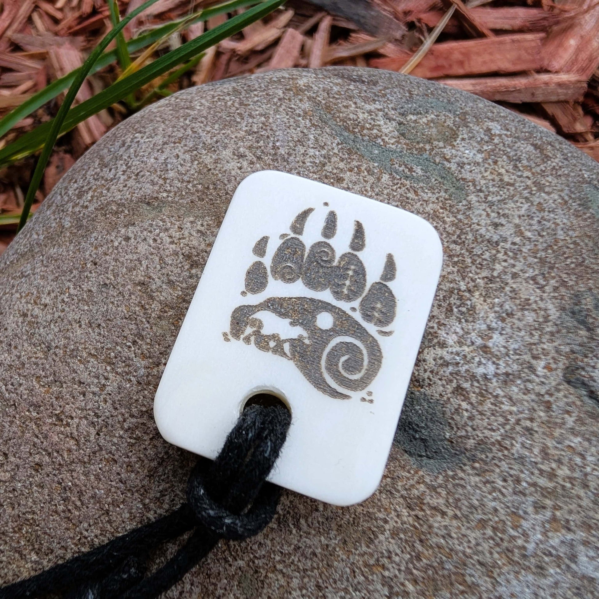Handmade Bear Paw Pendant – Bone Necklace with Etched Design
