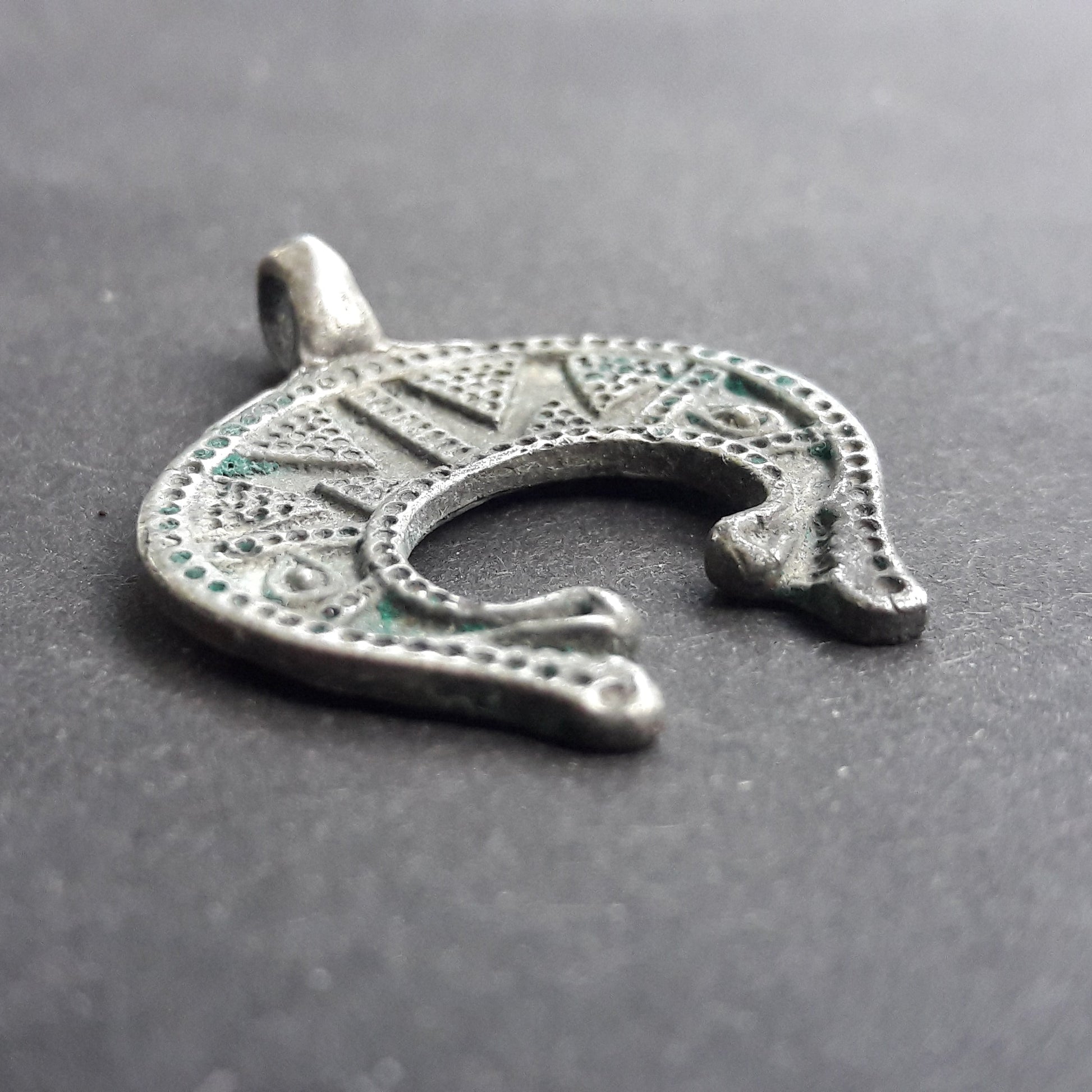 Viking Zoomorphic Lunar Amulet – Hand-Forged Silver, Patinated