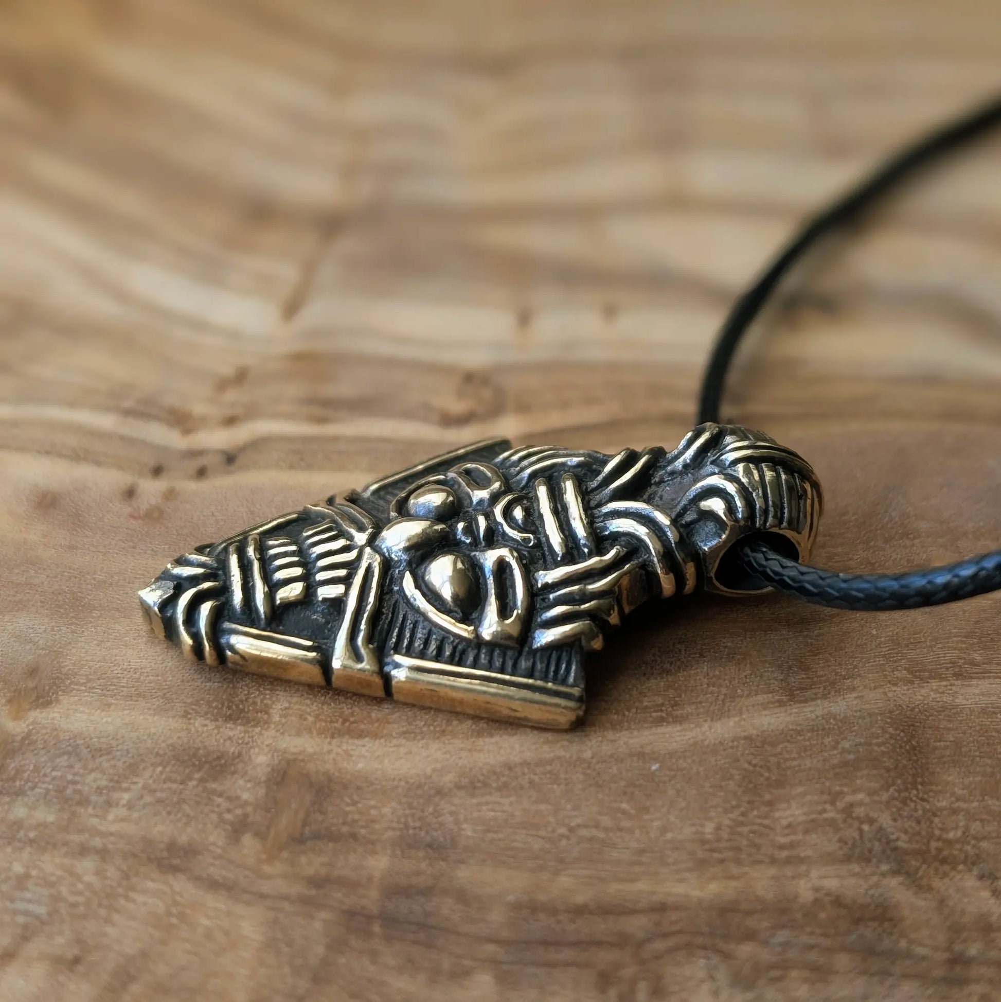 Each pendant is hand-cast in brass or pewter and finished individually. Small variations in surface, depth, and tone remain visible and are part of the character of the piece. The result is a solid, tactile amulet that feels grounded and wearable.