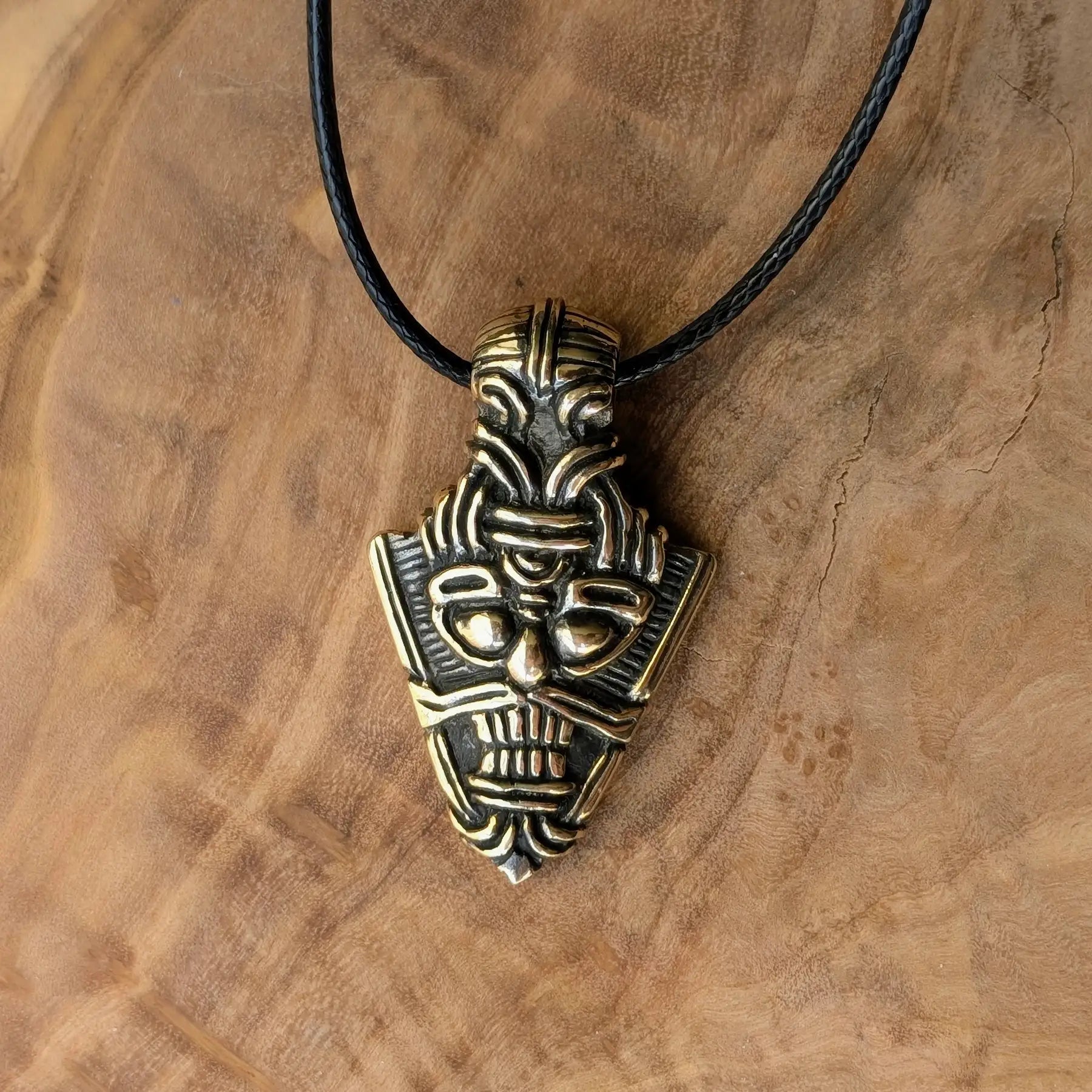Mask-style Odin pendant inspired by Viking Age metalwork, cast in brass or pewter.