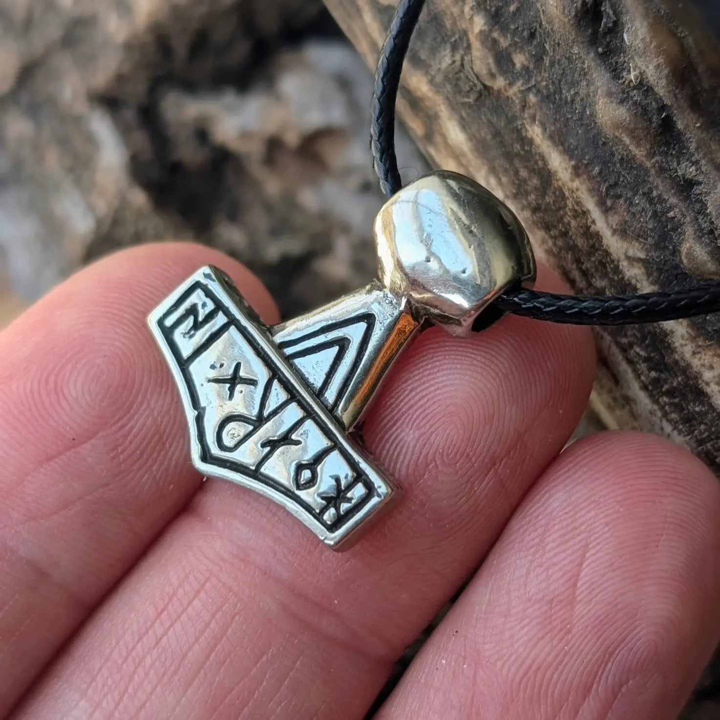 The only historically proven runic Mjölnir amulet, recreated by hand from the 10th-century Danish find