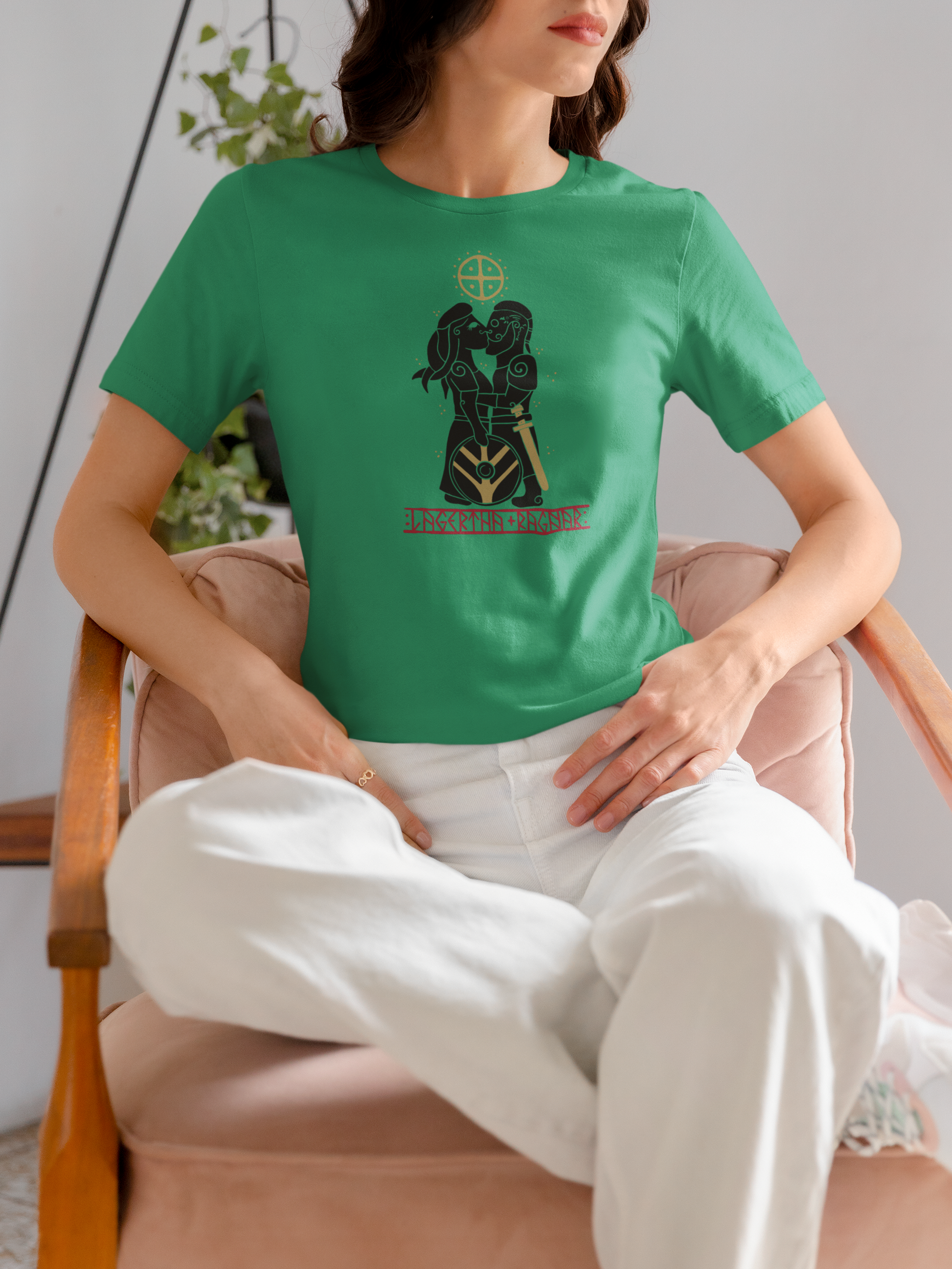 The Lagertha & Ragnar T-shirt celebrates one of the most iconic stories in Norse legend – the fearless shieldmaiden and the legendary Viking king bound by love, loyalty, and destiny. Inspired by historical sagas and Viking-era symbolism, this design reflects the strength and connection that made their names live on through the centuries.
