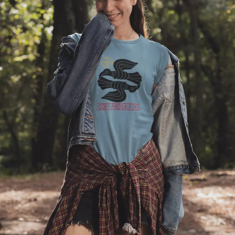 Unisex tee honoring Odin’s ravens, symbols of wisdom and protection.