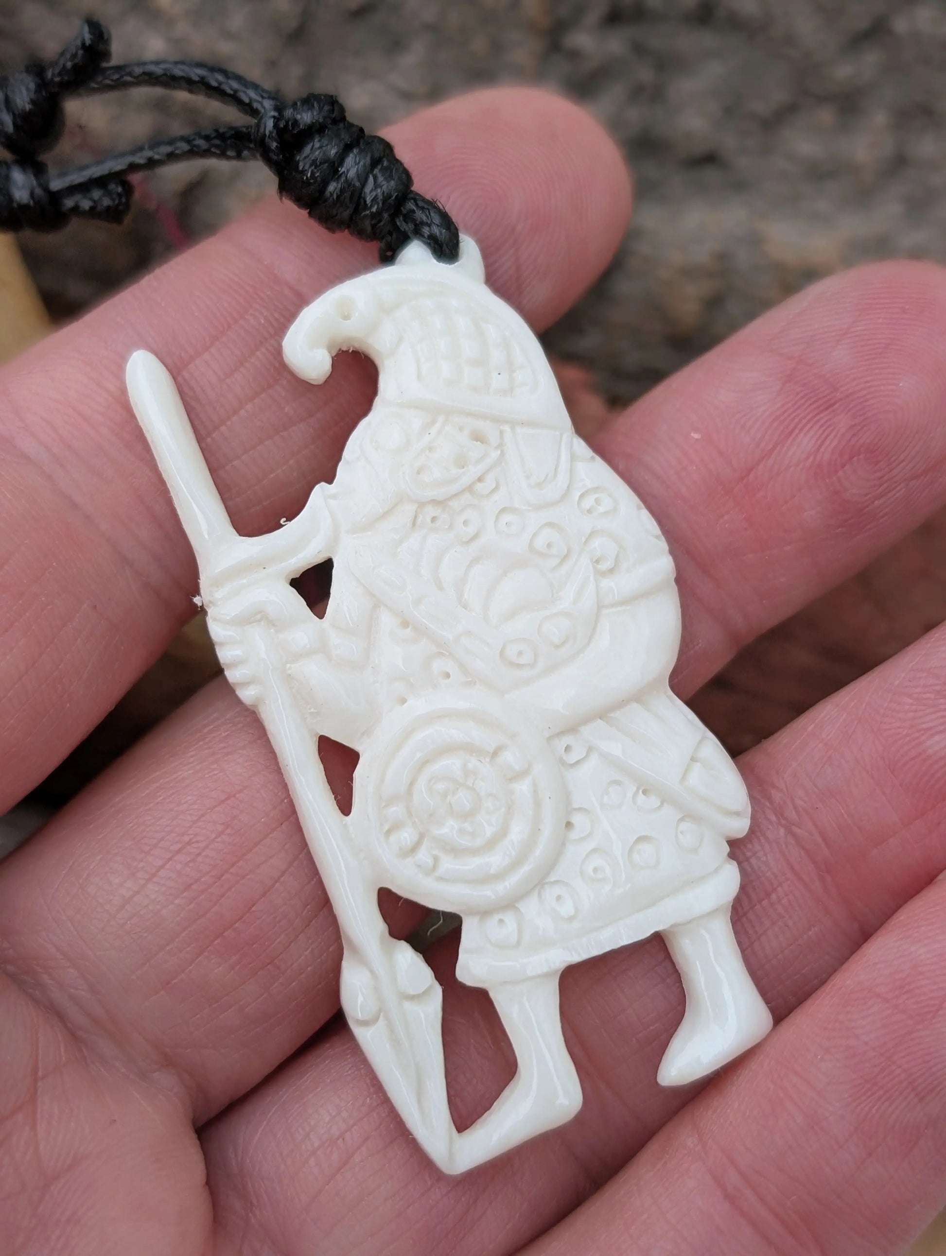 Vendel Period Warrior Pendant with Raven Helmet – Hand-Carved Horn or Bone Amulet